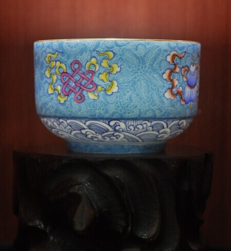 藍地玲瓏扒花杯
